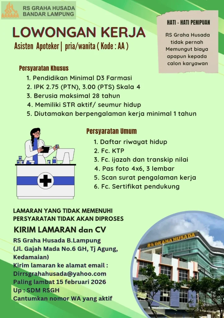 Informasi Lowongan Pekerjaan : Asisten Apoteker (Kode: AA)