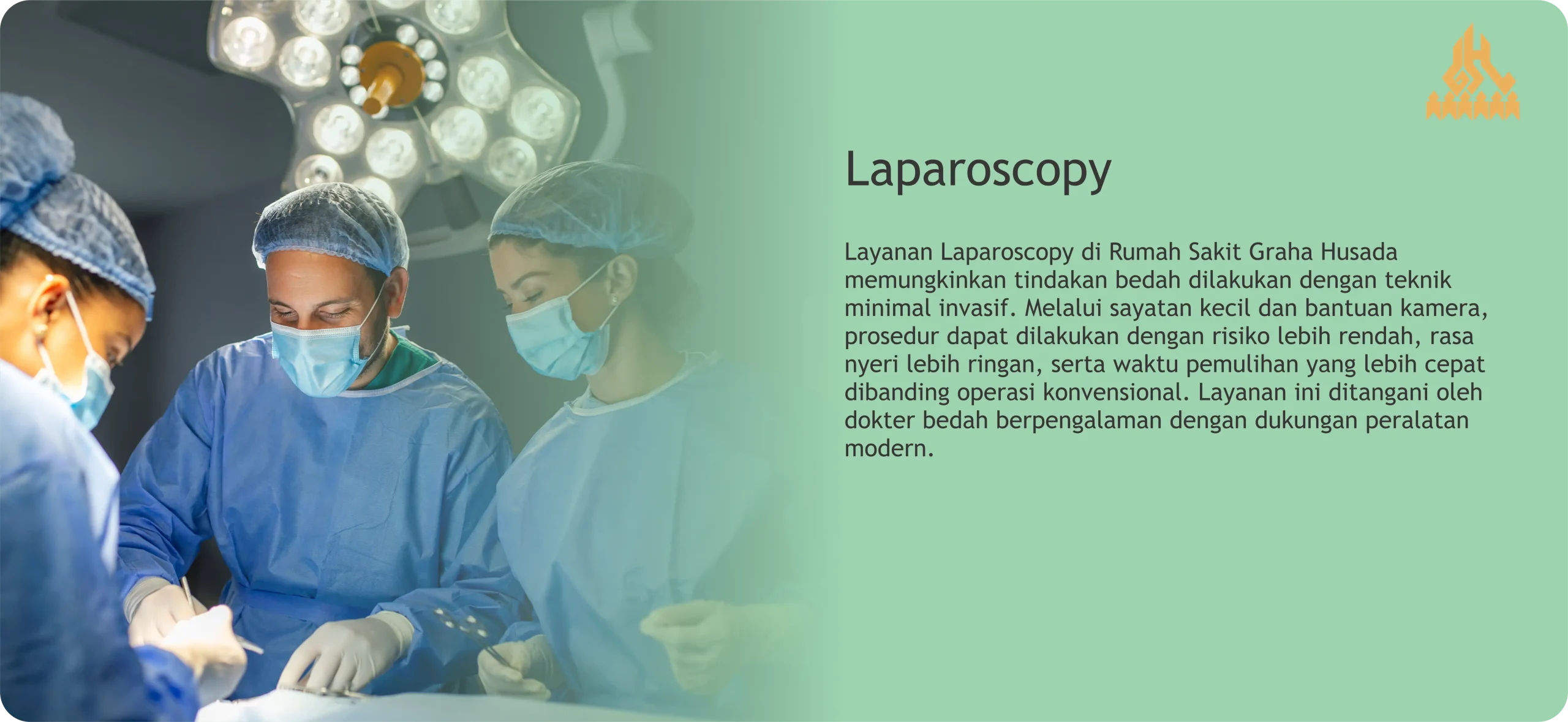 Bedah Endo Laparascopy adalah suatu suatu teknik pembedahan dengan sayatan kecil atau disebut juga operasi invasive minimal yang menggunakan alat-alat canggih .Keuntungan dari bedah endo laparascopy yaitu proses penyembuhannya jauh lebih cepat dibandingkan dengan operasi besar, nyeri pasca bedah jauh lebih ringan dan membantu menegakkan diagnosa lebih akurat. Bedah Endo laparascopy dilakukan untuk penyakit Batu kandung empedu. Saluran empedu Usus Buntu,hernia, Peradangan / kanker usus Pengikatan lambung, (gastric banding) untuk obesitas Peradangan / tumor ginjal ,varicocel,penyakit kandungan Penyakit sendi ( Arthroscopi), THT Membantu menegakkan Diagnostik