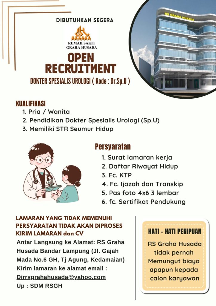 RS Graha Husada mengundang Dokter Spesialis Urologi yang berkompeten untuk bergabung dalam pelayanan medis unggulan.